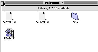 So, it was back to my old friend - Matt's Script Archive at http://worldwidemart.com/scripts/w here there's a whole pile of great stuff for you to download. The archive contains both a graphical & a text only counter. I chose the text version for the reasons outlined above & read through the various bits & pieces that were available on the site about it & downloaded Textcounter.pl, which contains a simple Perl script & a Read Me file - I chose the .zip archive as I knew Stuffit Expander could extract the archive file & I'm still relatively inexperienced at extracting .tar archives.